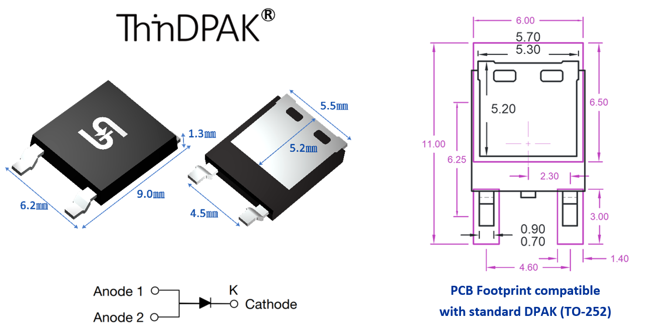 The current ranges are from 6A~15A within the ThinDPAK package. Switching speeds of either (trr<25ns) or (trr<60ns) can be selected for different applications to achieve the power efficiency needed. ThinDPAK package is footprint compatible with standard D-PAK offering a low profile with lower thermal resistance providing a drop in upgrade path for existing applications. TSC provides SPICE, thermal and 3D CAD models on our website to support fast simulation.
