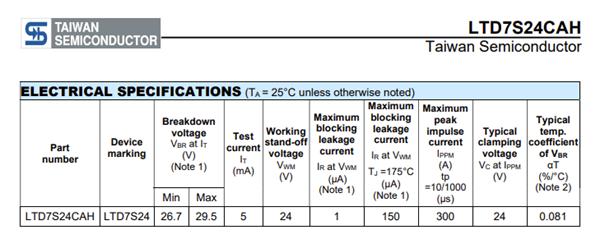 Taiwan Semiconductor’s latest innovation, the LTD7S24CAH Super Clamp TVS diode, provides a breakthrough in this regard. Engineered specifically for harsh environments like 24V (Using one LTD7S24CAH) and 48V (Using two LTD7S24CAH in series) in automotive and industrial applications, the LTD7S24CAH delivers exceptionally low clamping voltage while ensuring high reliability and simplified circuit design.