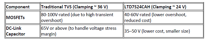 Result: Designers can confidently replace high-voltage, bulky components with smaller and more cost-effective ones without compromising protection. The LTD7S24CAH offers immediate PCB and BOM cost savings while simplifying thermal and mechanical design considerations.